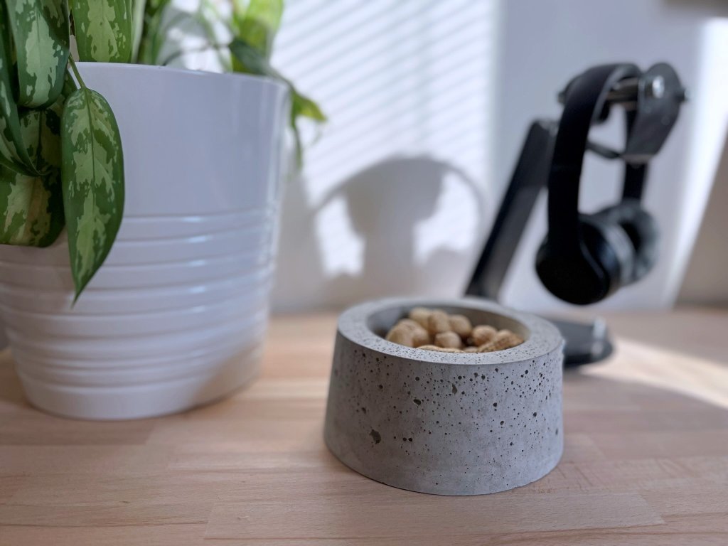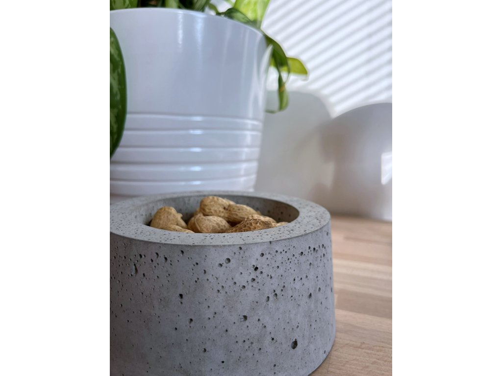 Masivní betonová miska Lumpa vyrobená z litého betonu. Vhodná na různé druhy pochutin a naimpregnovaná pro styk s potravinami.